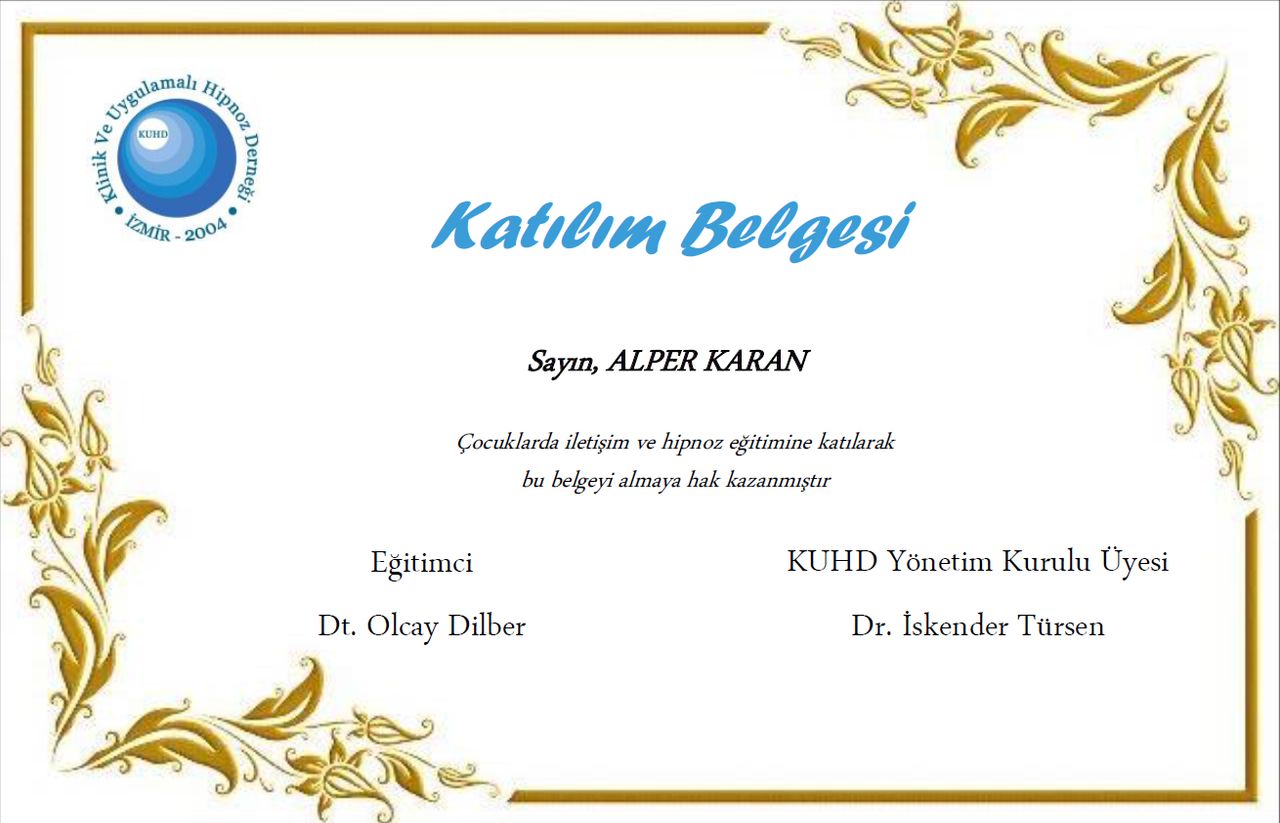 • Klinik ve Uygulamalı Hipnoz Derneği – Çocuklarda İletişim ve Hipnoz Eğitimi (Dt. Olcay DİLBER)