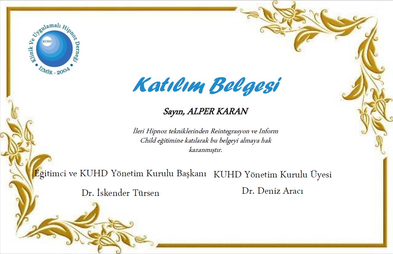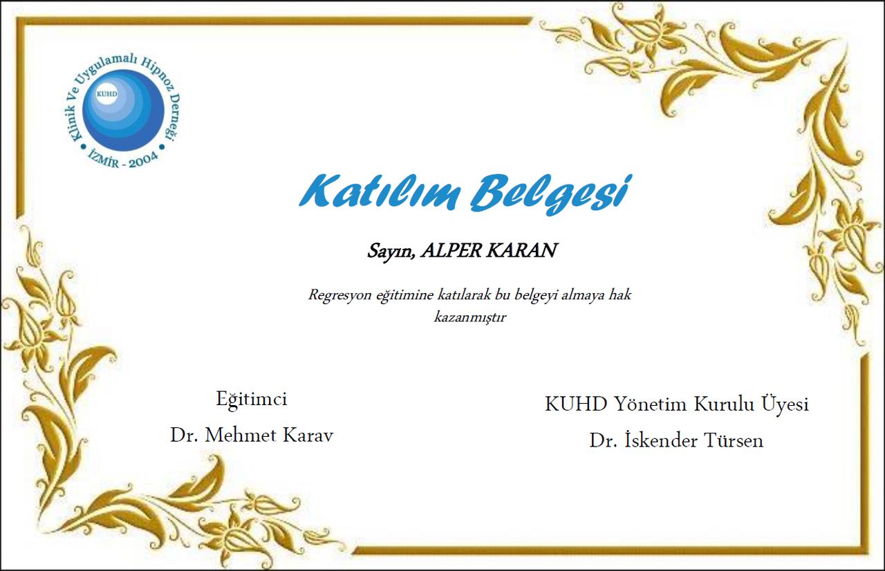 • Klinik ve Uygulamalı Hipnoz Derneği – Regresyon Eğitimi (Dr. Mehmet KARAV)