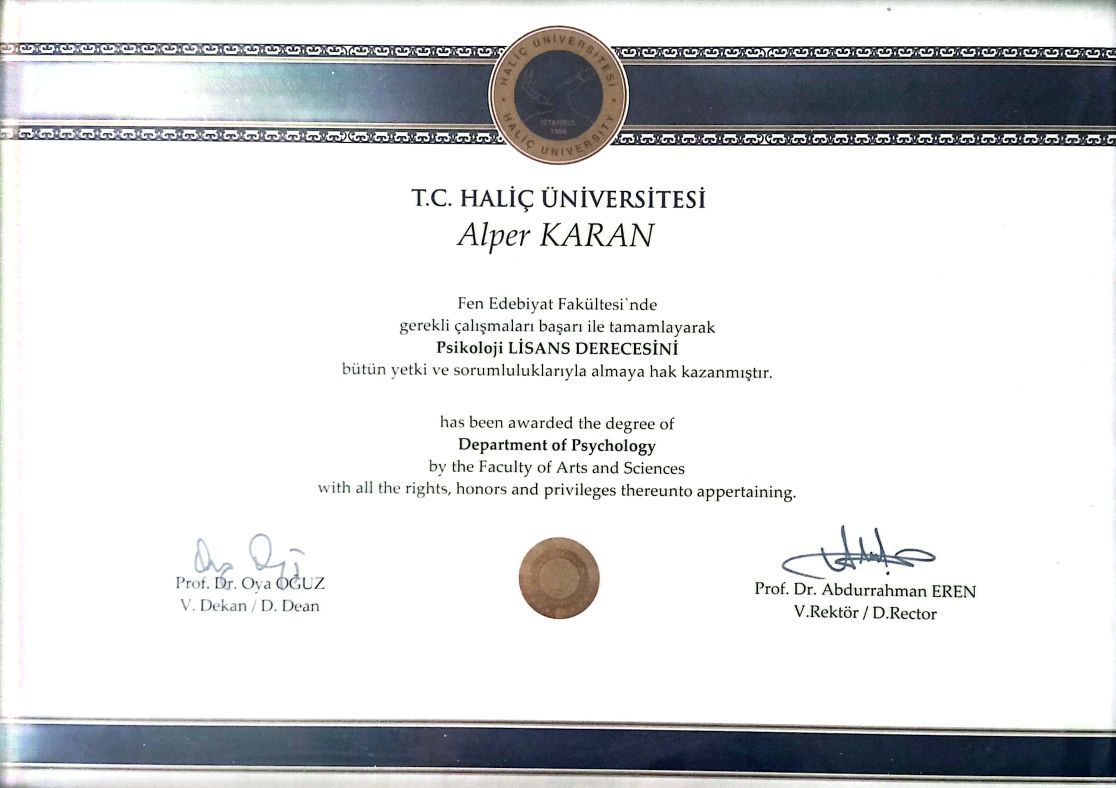 1993 yılında Çanakkale Biga’da doğan Uzm. Klinik Psikolog Alper Karan, psikoloji alanındaki eğitimini ve mesleki deneyimlerini birleştirerek bireysel, çift ve aile danışmanlığı üzerine uzmanlaşmıştır.